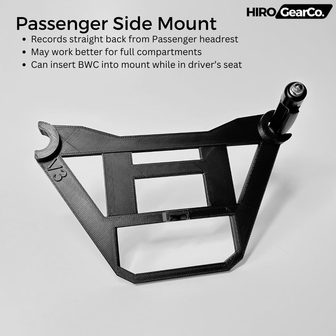 - Camera is mounted on passenger headrest posts and is compatible with half cages or full cages.